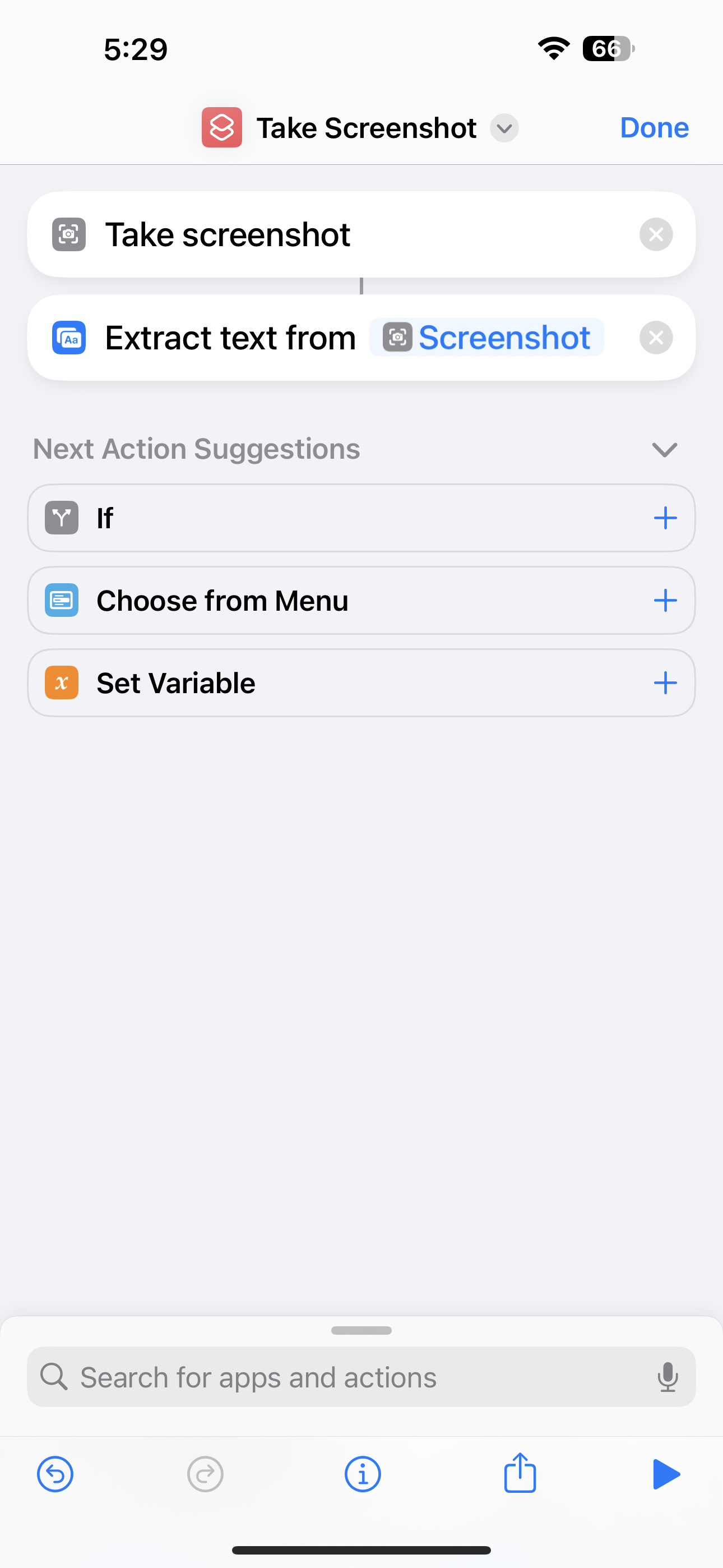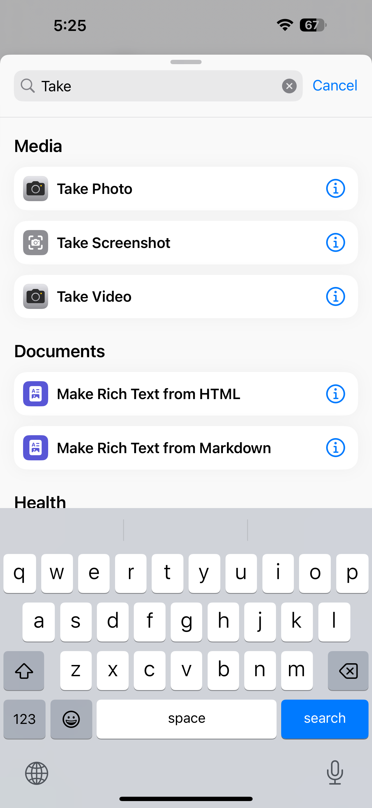 2. Now tap “Add Action” and search “Take Screenshot.” Tap on it and make it the first action of your shortcut.